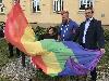 „Hier unter uns geht es um Gleichbehandlungen, Gleichberechtigungen aller Geschlechter – auf der Straße, in den Ortsteilen und auch im Rathaus von Eisenhüttenstadt“, sagte Thomas Kühn. Gemeinsam mit dem Geschäftsführer des Verbandes, Lars Bergmann, und Laurenz Kampa hisste er dann die Regenbogenfahne am Rathaus Eisenhüttenstadt als Zeichen dafür, dass auch die Stadt diesen offenen und toleranten Gedanken teilt und aktiv unterstützt. „Danke, dass wir hier in Eisenhüttenstadt unsere Fahne hissen dürfen“, sagte Lars Bergmann an Thomas Kühn und die Eisenhüttenstädterinnen und Eisenhüttenstädter