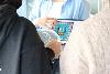 Während der Reinraumführung betrachten Schülerinnen einen Wafer aus der Nähe.